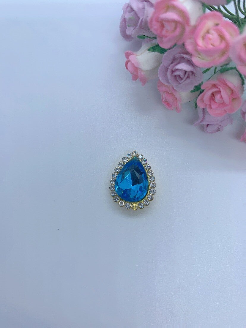 Steen ovaal blauw (goud achterkant)